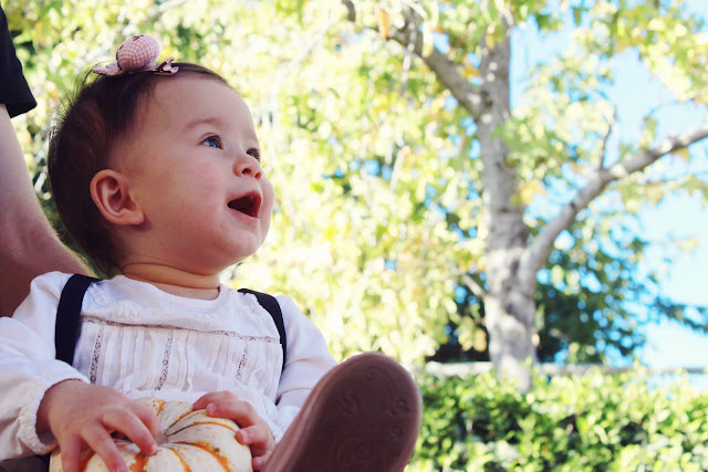 This year was Ava's first Halloween and we were able to finally take her to Bates Nut Farm. Although we wanted to take her earlier with Joseph, but she came down with some bad virus that even landed her in the ER. So she was basically quarantined in the house for a week. Once she got some good ol medicine from the ER doctor, she was able to venture out on Saturday to look at pumpkins! I remember the first time taking Joseph there, it was so cool because it was actually a field full of pumpkins still on the vine and they were all enormous! They had a straw maze, tractor rides, and all kinds of food.